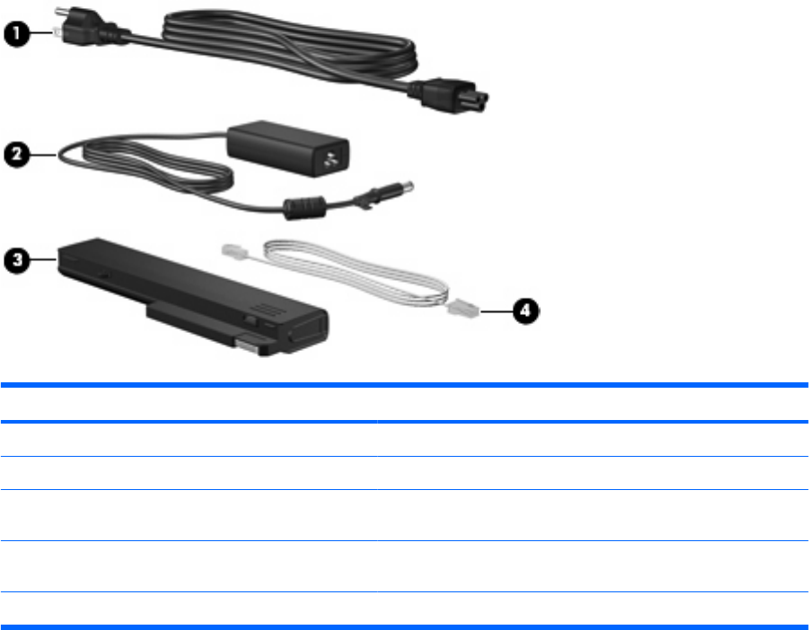 (4) Cabo de modem* Conecta o modem interno a um conector de telefone RJ-11 ou a