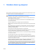 Bytte ut harddisken FORSIKTIG Slik hindrer du at maskinen låser seg og at du mister data: Slå av maskinen før du tar harddisken ut av harddiskbrønnen. Ikke ta ut harddisken mens maskinen er på, i ventemodus eller i dvalemodus. Hvis du ikke er sikker på om datamaskinen er av eller i dvalemodus, trykker du på av/på-knappen for å slå på maskinen. Deretter slår du av maskinen via operativsystemet. Slik tar du ut harddisken: 1. Lagre arbeidet ditt. 2. Slå av maskinen og lukk skjermen. 3.