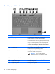 Billentyűk Részegység Leírás (1) esc billentyű Az fn billentyűvel együtt lenyomva információkat jelenít meg a rendszerről. (2) fn billentyű A funkcióbillentyűkkel, illetve az esc billentyűvel együtt lenyomva gyakran használt rendszerfunkciókat hajt végre. (3) Windows-billentyű A Windows Start menüt jeleníti meg. (4) Helyi menü billentyű Megjeleníti az egérmutató aktuális pozíciójához tartozó helyi menüt.