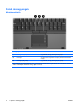 Felső részegységek Mutatóeszközök Részegység Leírás (1) Pöcökegér bal gombja Úgy működik, mint egy külső egér bal gombja. (2) Pöcökegér Az egérmutató mozgatására és képernyőelemek kiválasztására szolgál. (3) Pöcökegér jobb gombja Úgy működik, mint egy külső egér jobb gombja. *Ez a táblázat a gyári alapbeállításokat írja le. A mutatóeszköz beállításainak megtekintéséhez és módosításához válassza a Start > Vezérlőpult > Hardver és hang > Egér lehetőséget. 2 1.