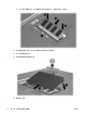 . 滑动 4 个键盘释放锁定器,锁定键盘。 15. 翻转笔记本计算机,将其放在平整的表面上。 16. 重新安上键盘螺钉。 17. 重新装上电池。 18. 重新连接外部电源和外部设备。 19.