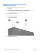 Uppgradera en minnesmodul i facket för primärminnesmoduler Så här uppgraderar du en minnesmodul i facket för primärminne: 6 1. Spara arbetet. 2. Stäng av datorn. (Om du är osäker på om datorn är avstängd eller i viloläge trycker du på ström-/väntelägesknappen. Stäng sedan av datorn via operativsystemet.) 3. Koppla från alla externa enheter som är anslutna till datorn. 4. Dra ut nätsladden från eluttaget. 5. Vänd datorn uppochner på en plan yta. 6. Ta bort batterierna från datorn. 7.