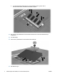 c. Tryk hukommelsesmodulet (3) ned, og pres på både venstre og højre side af hukommelsesmodulet, indtil klemmerne klikker på plads. 14. Sæt tastaturet tilbage på sin tidligere plads.