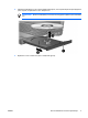 2. Извлеките диск (3) из лотка, слегка нажав на шпиндель, на котором закреплен диск. Держите диск за края, не прикасаясь к его поверхности. Примечание его. 3. RUWW Если лоток выдвинут не полностью, аккуратно сдвиньте диск, извлекая Вдвиньте лоток и поместите диск в защитный футляр.