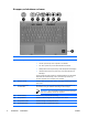 Onderdeel Beschrijving (8) Hiermee kunt u zich bij Windows aanmelden met een vingerafdruk en hoeft u geen wachtwoord op te geven. Vingerafdruklezer *In deze tabel worden de fabrieksinstellingen beschreven. Zie voor informatie over het wijzigen van de fabrieksinstellingen de handleidingen onder Help en ondersteuning. Toetsen NLWW Onderdeel Beschrijving (1) esc-toets Als u op deze toets drukt in combinatie met de fn-toets, wordt de systeeminformatie weergegeven.