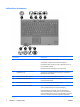 Tabla de contenidos 1 Componentes Componentes de la parte superior ....................................................................................................... 2 Dispositivos señaladores ..................................................................................................... 2 TouchPad ............................................................................................................................ 3 Indicadores luminosos ...................................................