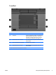 Componenti della parte posteriore (1) Componente Descrizione Attacco per cavo di protezione Consente di collegare un cavo di protezione opzionale al computer. Nota Il cavo di protezione è concepito come deterrente, ma non può impedire un uso improprio o il furto del computer. ITWW (2) Connettore di alimentazione Consente il collegamento di un adattatore CA.