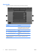 Composant Description Vous pouvez également reprogrammer ce bouton pour réaliser une des actions suivantes : 10 Chapitre 3 Boutons HP Quick Launch ● Ouverture du Menu Q ou de Info Center (Centre d'informations) ● Ouverture d'un éditeur de courrier électronique ● Ouverture d'une zone de recherche afin de rechercher un site Web FRWW