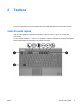 TouchPad L'illustrazione e la tabella seguenti descrivono il TouchPad del computer. Componente Descrizione (1) TouchPad* Consente di spostare il puntatore e di selezionare e attivare gli elementi sullo schermo. Può essere impostato per eseguire altre funzioni del mouse, come scorrere, selezionare e fare doppio clic. (2) Pulsante sinistro del TouchPad* Ha la stessa funzione del pulsante sinistro di un mouse esterno. (3) Area di scorrimento del TouchPad* Scorre in alto e in basso.