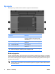3 HP Quick Launch-knapper Bruk HP Quick Launch-knappen til å åpne programmer (også kalt applikasjoner i kontrollpanelet for HP Quick Launch-knappene). (1) (2) NOWW Komponent Beskrivelse Info Center-knapp Starter Info Center, der du kan åpne ulike programvareløsninger. Du kan også omprogrammere denne knappen til å utføre en av følgende handlinger: Presentasjonsknapp ● Åpne presentasjonsfunksjonen eller Q-menyen. ● Åpne et e-postprogram. ● Åpne et søkevindu der du kan søke etter et websted.