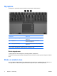 Angi innstillinger for styreputen Ved hjelp av Egenskaper for Mus i Microsoft® Windows® kan du tilpasse innstillinger for pekeutstyr, inkludert ● Lett banking på styreputen, som gjør at du kan banke på styreputen én gang for å velge et objekt eller to ganger for å dobbeltklikke på et objekt (aktivert i standardinnstillingene). ● Bevegelse på kanten, som gir deg muligheten til å fortsette å rulle selv om fingeren din har nådd kanten av styreputen (deaktivert i standardinnstilingene).
