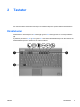Styrepute Illustrasjonen og tabellen nedenfor beskriver styreputen til datamaskinen. Komponent Beskrivelse (1) Styrepute* Flytter pekeren og merker eller aktiverer elementene på skjermen. Kan angis til å utføre andre musefunksjoner, for eksempel rulling, valg og dobbeltklikking. (2) Venstre styreputeknapp* Fungerer på samme måte som venstre knapp på en ekstern mus. (3) Styreputerulleområde* Ruller opp og ned. (4) Høyre styreputeknapp* Fungerer på samme måte som høyre knapp på en ekstern mus.