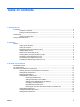 Table of contents 1 Pointing Devices TouchPad ............................................................................................................................................. 2 Using the TouchPad ............................................................................................................ 2 Setting TouchPad preferences ............................................................................................ 2 Pointing stick ....................................................