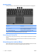 3 HP Quick Launch-Tasten Mit den HP Quick Launch-Tasten können Sie häufig verwendete Programme, manchmal auch Anwendungen genannt, in der Systemsteuerungsoption HP Quick Launch Buttons öffnen. (1) (2) DEWW Komponente Beschreibung Info Center-Taste Startet Info Center, mit dem Sie auf verschiedene Softwarelösungen zugreifen können. Sie können diese Taste auch neu programmieren, um eine der folgenden Aktionen auszuführen: Präsentations-Taste ● Öffnen der Präsentationsfunktion oder des Q Menu.