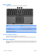 3 HP Hızlı Başlatma düğmeleri HP Hızlı Başlatma Düğmeleri denetim masasında bazen uygulamalar denen sık kullanılan programları açmak için HP Hızlı Başlatma düğmelerini kullanın. (1) (2) TRWW Bileşen Açıklama Bilgi Merkezi düğmesi Çeşitli yazılım çözümlerini açmanıza olanak veren Bilgi Merkezi’ni başlatır. Ayrıca, aşağıdaki işlemlerden birini gerçekleştirmek için bu düğmeyi yeniden programlayabilirsiniz: Sunu düğmesi ● Q Menüsü’nü veya sunu özelliğini açma. ● E-posta düzenleyicisi açma.