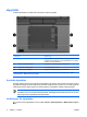 Komponent Beskrivning Presentationsknappen kan också omprogrammeras att utföra någon av följande åtgärder: 10 Kapitel 3 HP Quick Launch Buttons ● Öppna Q Menu eller Info Center. ● Öppna en e-postredigerare. ● Öppna en sökruta där du kan söka efter en webbplats.