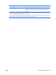 8 Funktion Tangentkombination Initiera vänteläge fn+f3 Växla mellan visning av datorns bildskärm och en extern bildskärm fn+f4 Visa batteriinformation fn+f8 Rensa batteriinformation fn+f8 Minska bildskärmens ljusstyrka fn+f9 Öka bildskärmens ljusstyrka fn+f10 Aktivera och inaktivera sensorn för omgivande ljus fn+f11 Kapitel 1 Komponenter SVWW