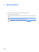1 Quick checklist If you experience computer problems, follow the troubleshooting steps below: 1. Refer to the information in this chapter. 2. Access additional information about the computer and Web site links through the Help and Support Center. NOTE Although many checkup and repair tools require an Internet connection, other tools can help you fix a problem when the computer is offline. 3. ENWW Contact Customer Care for any further assistance. Refer to the "Customer Care" chapter in this guide.
