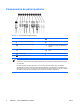 Teclado Tabela 1-4 Componentes do teclado 1 PTPT 1 Teclas de função Executam funções especiais, de acordo com a aplicação de software utilizada. 2 Teclas de edição Incluem as seguintes teclas: Insert, Home, Page Up, Delete, End e Page Down. 3 Indicadores luminosos de estado Indicam o estado do computador e das definições do teclado (Num Lock, Caps Lock e Scroll Lock). 4 Teclado numérico Funcionam como as teclas de uma calculadora.