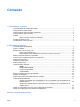 Conteúdo 1 Funcionalidades do produto Funcionalidades da configuração padrão ............................................................................................ 1 Componentes do painel frontal ............................................................................................................ 2 Componentes do leitor de cartões multimédia ..................................................................................... 3 Componentes do painel posterior ..................................