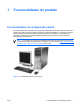 1 Funcionalidades do produto Funcionalidades da configuração padrão As funcionalidades do computador HP Compaq Convertible Minitower podem variar de acordo com o modelo. Para obter uma lista completa do hardware e software instalados no computador, execute o utilitário de diagnóstico (incluído apenas nalguns modelos de computador). As instruções para utilização do utilitário são fornecidas no Manual de Resolução de Problemas contido no CD de Documentação e Diagnósticos.