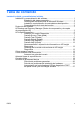 Tabla de contenido Instalación rápida y procedimientos iniciales Instalación y personalización del software ..................................................... 1 Instalación del sistema operativo ................................................. 1 Descarga de actualizaciones de Microsoft Windows ................... 2 Instalación o actualización de controladores de dispositivo ......... 2 Personalización de la vista del monitor ........................................ 3 Protección del software ............