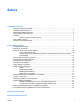 Saturs 1 Izstrādājuma iespējas Standarta konfigurācijas līdzekļi ........................................................................................................... 1 Priekšējā paneļa komponenti ............................................................................................................... 2 Mediju karšu lasītāja komponenti ......................................................................................................... 3 Aizmugurējā paneļa komponenti .......................