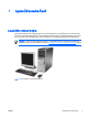 การเปลี่ยนจากแบบมินิทาวเวอรเปนแบบเดสกทอป 1. ยายออก/คลายอุปกรณความปลอดภัยที่ล็อคไวเพื่อไมใหเปดเครื่องคอมพิวเตอร 2. ถอดสื่อที่ถอดออกไดทั้งหมด เชน แผนดิสก หรือ คอมแพคดิสก ออกจากคอมพิวเตอร 3. ปดคอมพิวเตอรใหเหมาะสมผานระบบปฏิบัติการ กอนปดอุปกรณภายนอก 4.