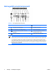 Multivides karšu lasītāja komponenti Multivides karšu lasītājs ir papildu ierīce, kas pieejama tikai dažos modeļos. Lai identificētu multivides kartes lasītāja komponentus, skatiet attēlu un tabulu. Tabula 1-2 Multivides karšu lasītāja komponenti 1 2 3 LVWW SmartMedia/xD ● 3,3 V SmartMedia karte (SM) ● D–Picture karte (xD) Multivides karšu lasītāja darbības indikators SD/MMC+/miniSD 4 Universālās seriālās kopnes (USB – Universal Serial Bus) ports 5 CompactFlash I/II 6 ● 1.