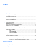 Saturs 1 Izstrādājuma iespējas Standarta konfigurācijas iespējas ......................................................................................................... 1 Priekšējā paneļa komponenti ............................................................................................................... 2 Multivides karšu lasītāja komponenti .................................................................................................... 3 Aizmugurējā paneļa komponenti ..........................