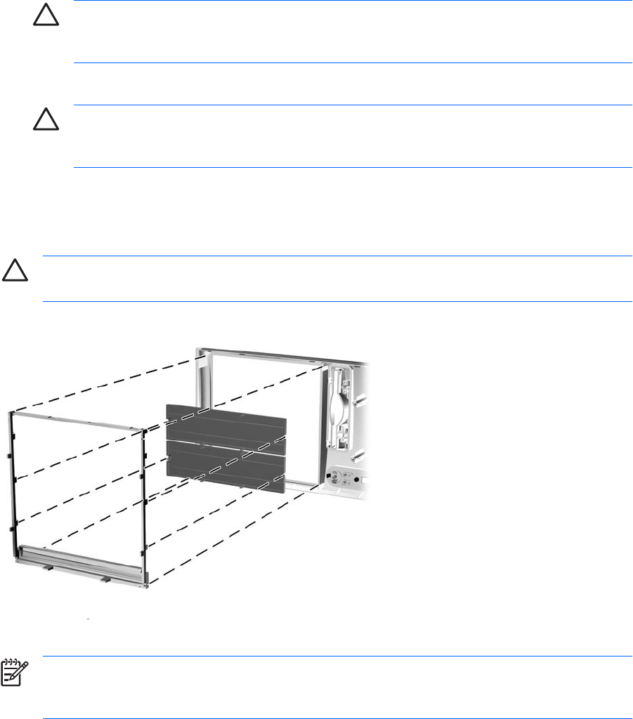 7. Gently pull the subpanel, with the bezel blanks secured in it, away from the front bezel, then remove
