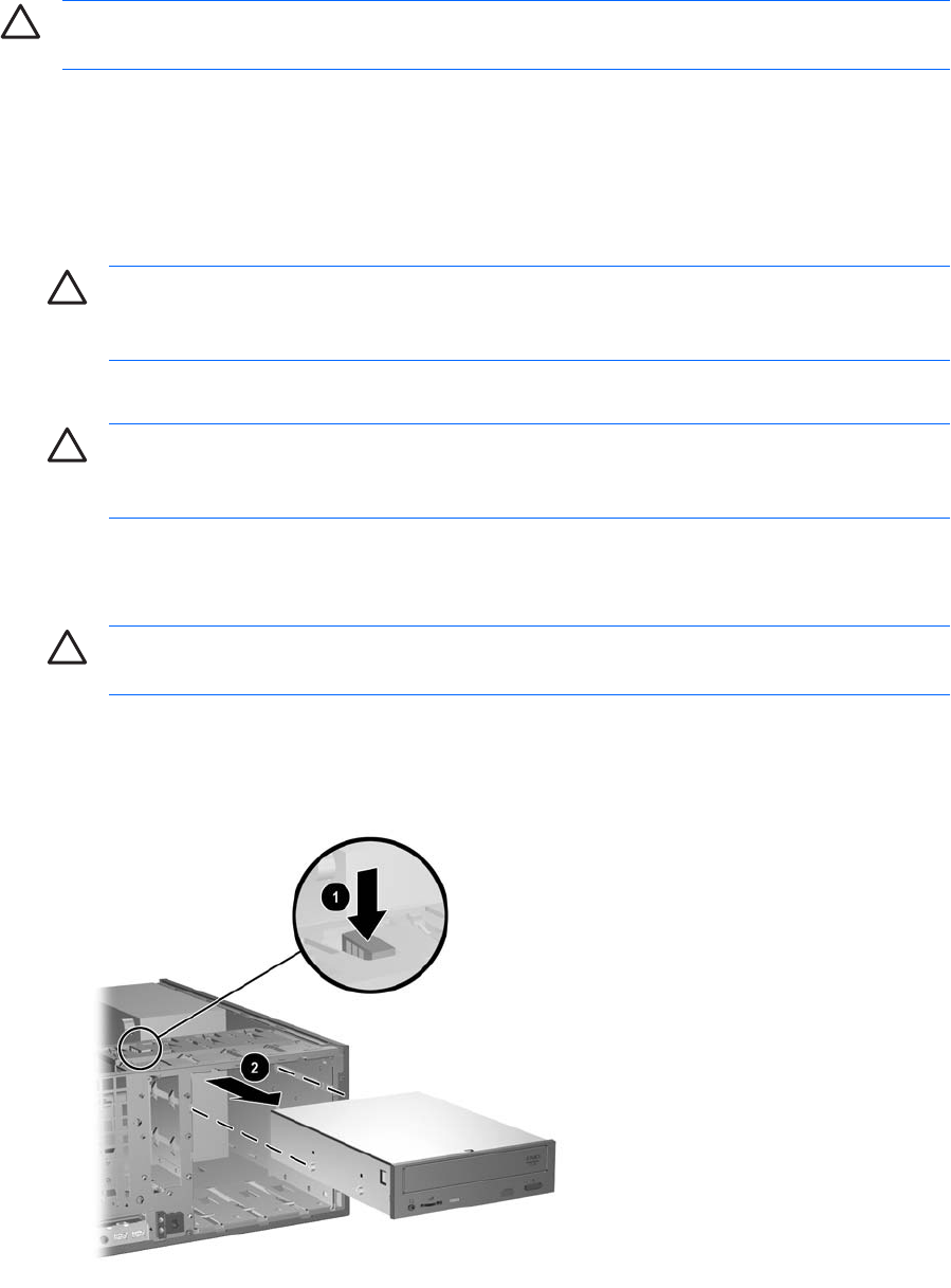 Figure 2-16 Removing a 5.25-inch Drive in the Desktop Configuration (Optical Drive shown)