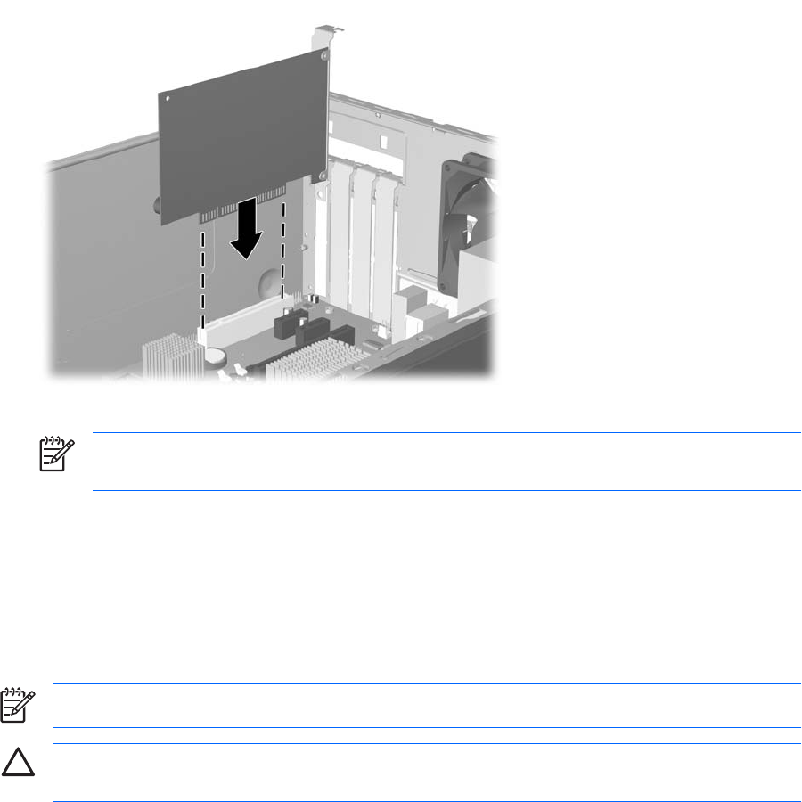 킷 밑면을 섀시의 작은 슬롯에 맞춥니다. 그런 다음 시스템 보드의 확장 소켓에 카드를 밀어 넣습