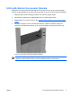 7. Genişletme kartı çıkıntısını kasaya doğru tutarken, yuva kapağı kilidini aşağı doğru kaydırarak