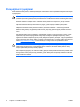 3 Baterijų keitimas Prie kompiuterio pridedamos baterijos tiekia maitinimą laikrodžiui, kuris programiškai kontroliuoja datą ir laiką. Jei keisite bateriją, naudokite baterijas, atitinkančias gamintojo įdėtąsias kompiuteryje. Prie kompiuterio pridedami 3 voltų ličio plokštieji baterijų elementai. DĖMESIO! Kompiuteryje yra vidinė ličio mangano dioksido baterija. Netinkamai naudojant bateriją, kyla gaisro ir nusideginimo rizika.