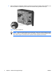 Fjerne en 3,5-tommers harddisk FORSIKTIG: Pass på at du oppretter gjenopprettingsdisker gjennom HP Backup and Recovery Manager, og at du sikkerhetskopierer de personlige filene på harddisken til en ekstern lagringsenhet før du fjerner harddisken. Hvis du ikke gjør det, vil det føre til tap av data. Når du har byttet ut den primære harddisken, må du laste inn filene som ble installert på fabrikken av HP, fra gjenopprettingsdiskene. 1.