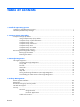 Table of contents 1 Install the Operating System Installing or Upgrading Device Drivers ........................................................................................ 1 HP Backup and Recovery Manager ............................................................................................ 2 2 Computer Setup (F10) Utility Computer Setup (F10) Utilities ................................................................................................... 3 Using Computer Setup (F10) Utilities .....