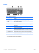 Teclado Tabla 1-3 Componentes del teclado 1 4 1 Teclas de función Realizan funciones especiales según la aplicación de software que se esté utilizando. 2 Teclas de edición Incluyen las siguientes: Insert, Inicio, RePág, Supr, Fin y AvPág. 3 Indicadores luminosos de estado Indican el estado del ordenador y las funciones seleccionadas en el teclado (Bloq Num, Bloq Mayús y Bloq Despl). 4 Teclas numéricas Funcionan como el teclado de una calculadora.