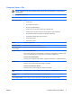 Computer Setup—Advanced NOTE Support for specific Computer Setup options may vary depending on the hardware configuration. Table 6 Computer Setup—Advanced (for advanced users) Option Heading Power-On Options Allows you to set: ● POST mode (QuickBoot, FullBoot, or FullBoot every 1–30 days). ● POST messages (enable/disable). ● F9 prompt (enable/disable or hidden/displayed). Enabling this feature will display the text F9 = Boot Menu during POST.