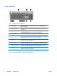 Windows-logotoets gebruiken U gebruikt de Windows-logotoets in combinatie met andere toetsen om bepaalde functies in Windows uit te voeren. Zie het gedeelte Toetsenbord voor meer informatie over de Windows-logotoets. NLWW Windows-logotoets Opent of verbergt het menu Start Windows-logotoets + d Toont het bureaublad Windows-logotoets + m Minimaliseert alle open applicaties. Shift + Windows-logotoets + m Maakt het minimaliseren van alle vensters ongedaan.