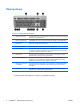Εξαρτήµατα πίσω πλευράς Πίνακας 1-2 Εξαρτήµατα πίσω πλευράς 1 Υποδοχή καλωδίου τροφοδοσίας 7 Υποδοχή δικτύου RJ-45 2 ∆ιακόπτης επιλογής τάσης 8 Παράλληλη υποδοχή 3 Υποδοχή ποντικιού PS/2 (πράσινη) 9 Υποδοχή οθόνης 4 Υποδοχή πληκτρολογίου PS/2 (µωβ) 10 Υποδοχή εξόδου για συσκευές ήχου που τροφοδοτούνται µε ρεύµα (πράσινη) 5 USB (Universal Serial Bus) 11 Υποδοχή εισόδου ήχου (µπλε) 6 Σειριακή υποδοχή 12 Υποδοχή οθόνης για ψηφιακή διασύνδεση εικόνας (DVI-D) Σηµείωση Η διάταξη και ο αρ