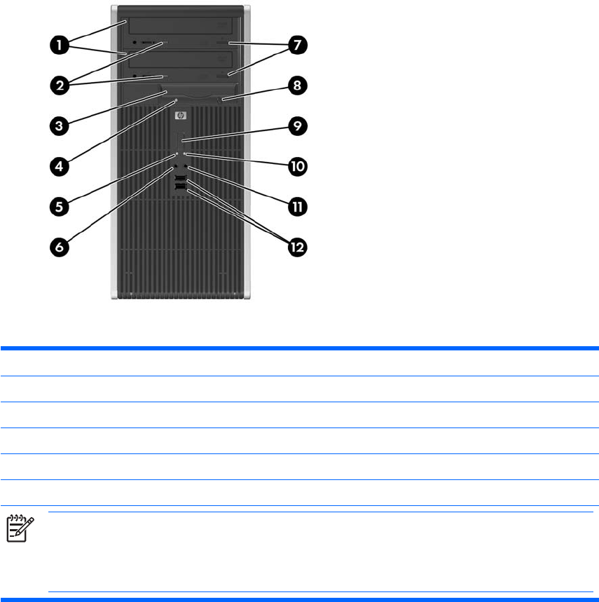 2 Spie di attività dell'unità dischi ottici 8 Pulsante di espulsione dischetto (optional)