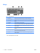 Arka Panel Bileşenleri Tablo 1-2 Arka Panel Bileşenleri 1 Güç Kablosu Konektörü 7 RJ-45 Ağ Konektörü 2 Voltaj Seçme Anahtarı 8 Paralel Konektör 3 PS/2 Fare Konektörü (yeşil) 9 Ekran Konektörü 4 PS/2 Klavye Konektörü (mor) 10 Güçlü ses aygıtları için Hat Çıkış Ses Konektörü (yeşil) 5 Evrensel Seri Veriyolu (USB) 11 Hat Giriş Ses Konektörü (mavi) 6 Seri Konektör 12 Dijital Video Arabirimi (DVI-D) Ekran Konektörü Not Konektörlerin düzeni ve sayısı modele göre farklılık gösterebilir.