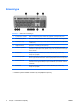 Складові частини задньої панелі Таблиця 1-2 Складові частини задньої панелі 1 Рознім для шнура живлення 7 Мережевий рознім RJ-45 2 Перемикач напруги 8 Паралельний рознім 3 Рознім для мишки PS/2 (зелений) 9 Рознім монітора 4 Рознім для клавіатури PS/2 (фіолетовий) 10 Вихідний лінійний рознім для аудіопристроїв з окремим живленням (зелений) 5 Universal Serial Bus (USB) 11 Вхідний лінійний аудіорознім (синій) 6 Послідовний рознім 12 Рознім монітора DVI-D (Digital Video Interface) Примі