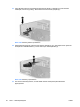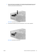 14. Käännä kiintolevyaseman vasenta puolta hieman alaspäin (1) niin, että ohjainruuvien yläreunat
