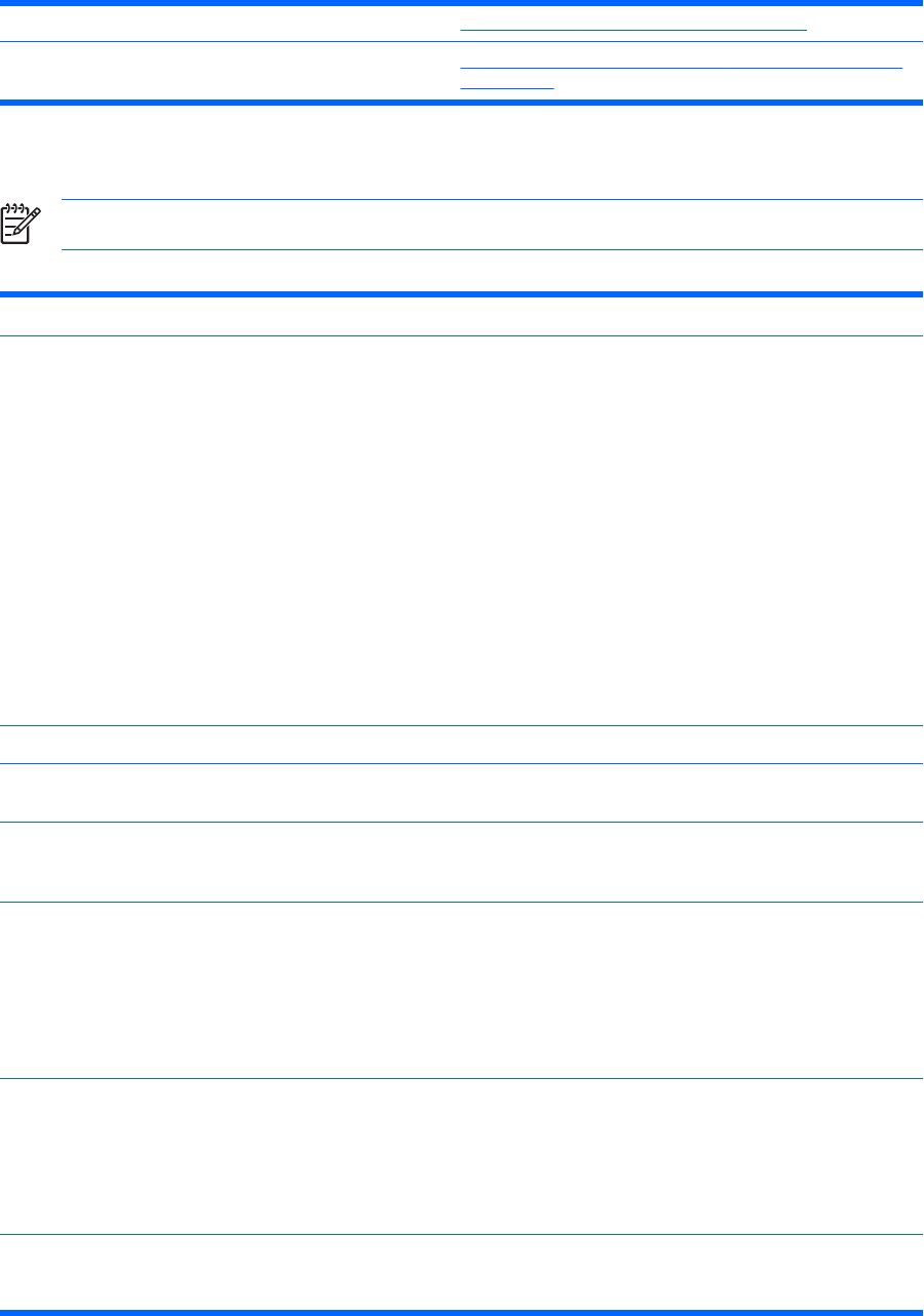 표 1 Computer Setup(F10) 유틸리티 (계속)