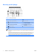 Elementy czytnika kart Czytnik kart jest urządzeniem opcjonalnym, dostępnym tylko w niektórych modelach. Na rysunku i w tabeli poniżej przedstawiono elementy czytnika kart. Tabela 1-2 Elementy czytnika kart 1 2 3 PLWW SmartMedia/xD ● Karta 3.