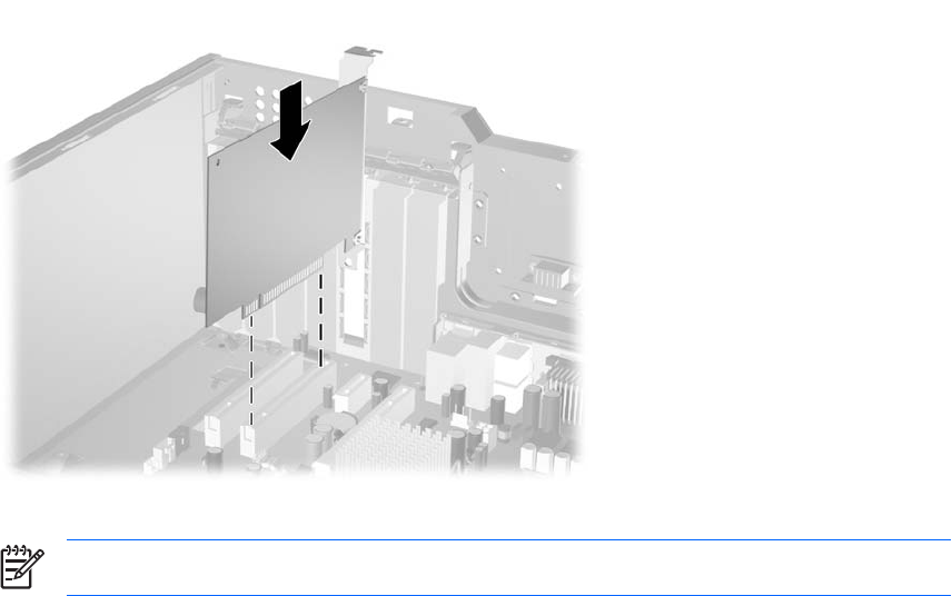 hrbtni strani ohišja, nato pa kartico pritisnite močno navzdol v podnožje na sistemski plošči.