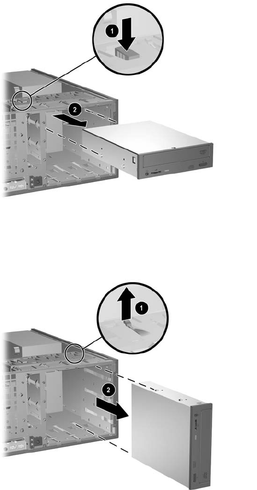 Slika 2-16 Odstranitev 5,25-palčnega pogona v namizni konfiguraciji (prikazan je optični