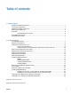 Table of contents 1 Product Features Standard Configuration Features ......................................................................................................... 1 Front Panel Components ..................................................................................................................... 2 Media Card Reader Components ......................................................................................................... 3 Rear Panel Components ................................